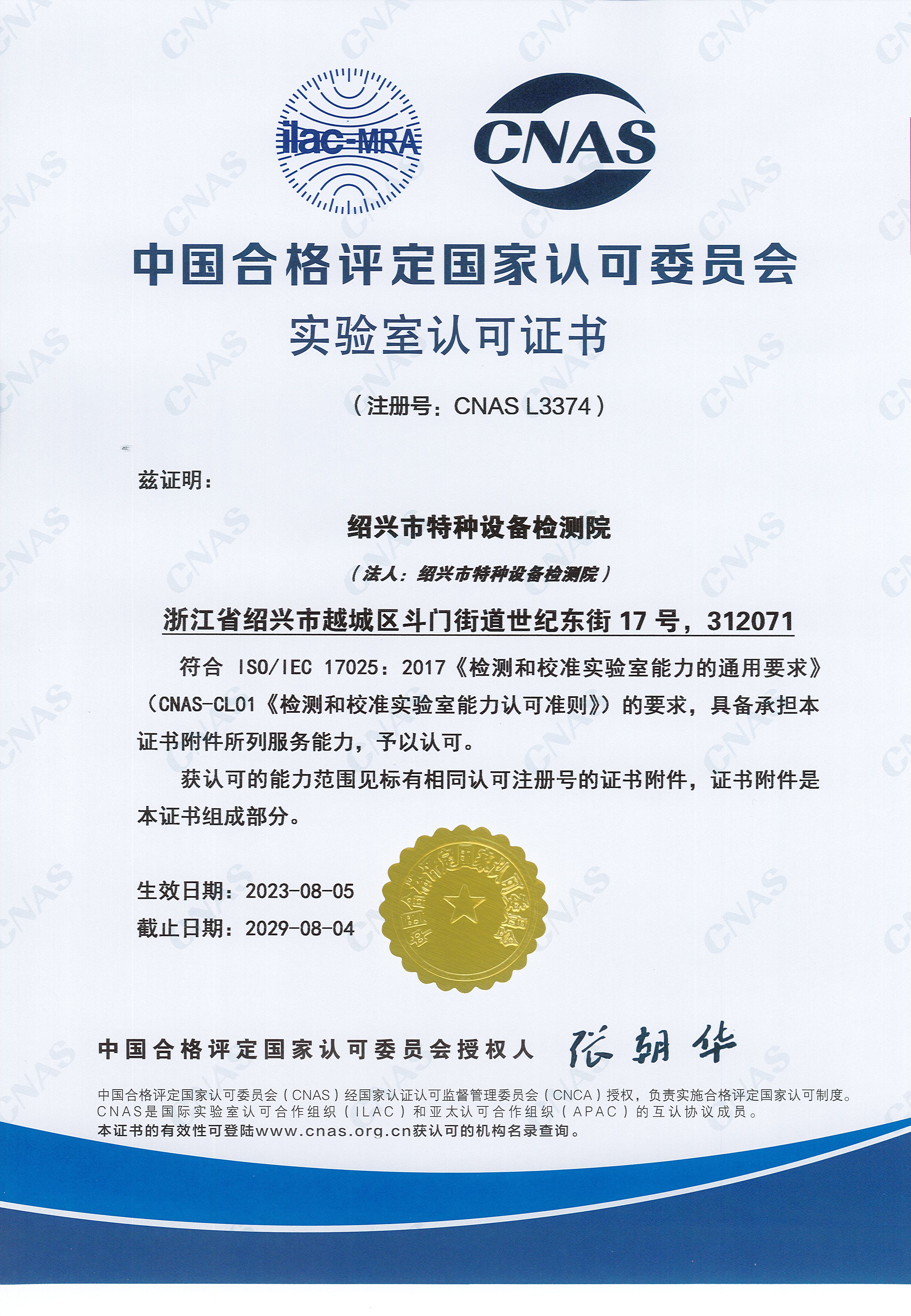 星空真人 > 机构设置 > 实验室认可证书